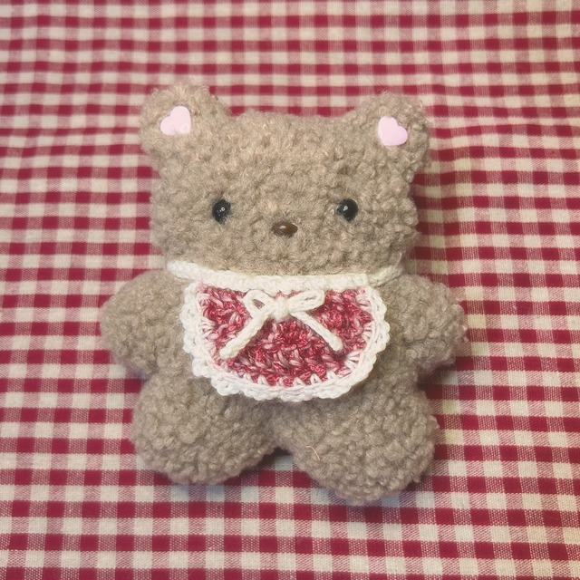 耳にハートがついたクマのぬいぐるみと、カラフルな毛糸のスタイのセットです♥バレンタインカラーの特別仕様! 【商品仕様】 ・スタイは取り外すことができます。 【サイズ】 身長約15cm 厚み4~5cm ┈┈┈┈┈┈┈┈┈┈ ⚠︎︎ご注意⚠︎︎ ・ぬいぐるみとスタイは一つずつ手作りのため、個体差が生じます。写真と印象が異なる場合がありますのでご了承ください。 ・ぬいぐるみについた目やビーズなどのパーツを引っ張ったり、強い力を加えると破損の原因となります。やさしくお取り扱いください。 ・一緒に過ごしているうちに汚れてしまった場合は、おしゃれ着用の中性洗剤などで表面をやさしく揉み、水で洗って乾かしてください。