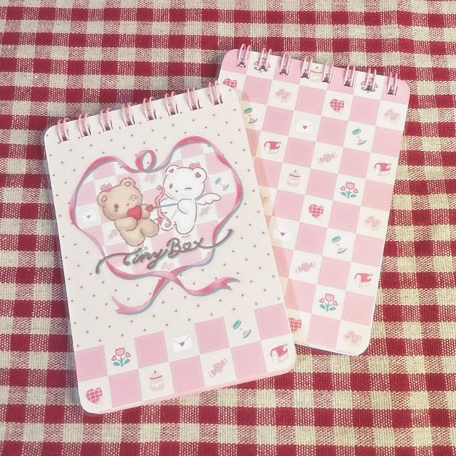 バレンタインをイメージした描き下ろしデザインのリング綴じメモ帳です♥ 持ち歩きしやすい手のひらサイズなので、お出かけ先でメモする時にも便利です。 【サイズ】 74mm×105mm 本文用紙50枚入り ┈┈┈┈┈┈┈┈┈┈ ⚠︎︎ご注意⚠︎︎ 本文の濃い印刷面に水性マーカーや水性ペンで筆記するとインクが弾かれますのでご注意ください。