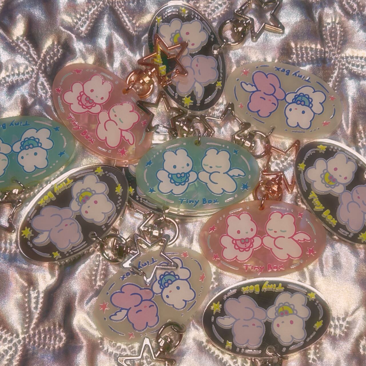 赤ちゃんのクマと天使のクマの出会いを描いた、ちょっぴりノスタルジックなキーホルダー.ᐟ