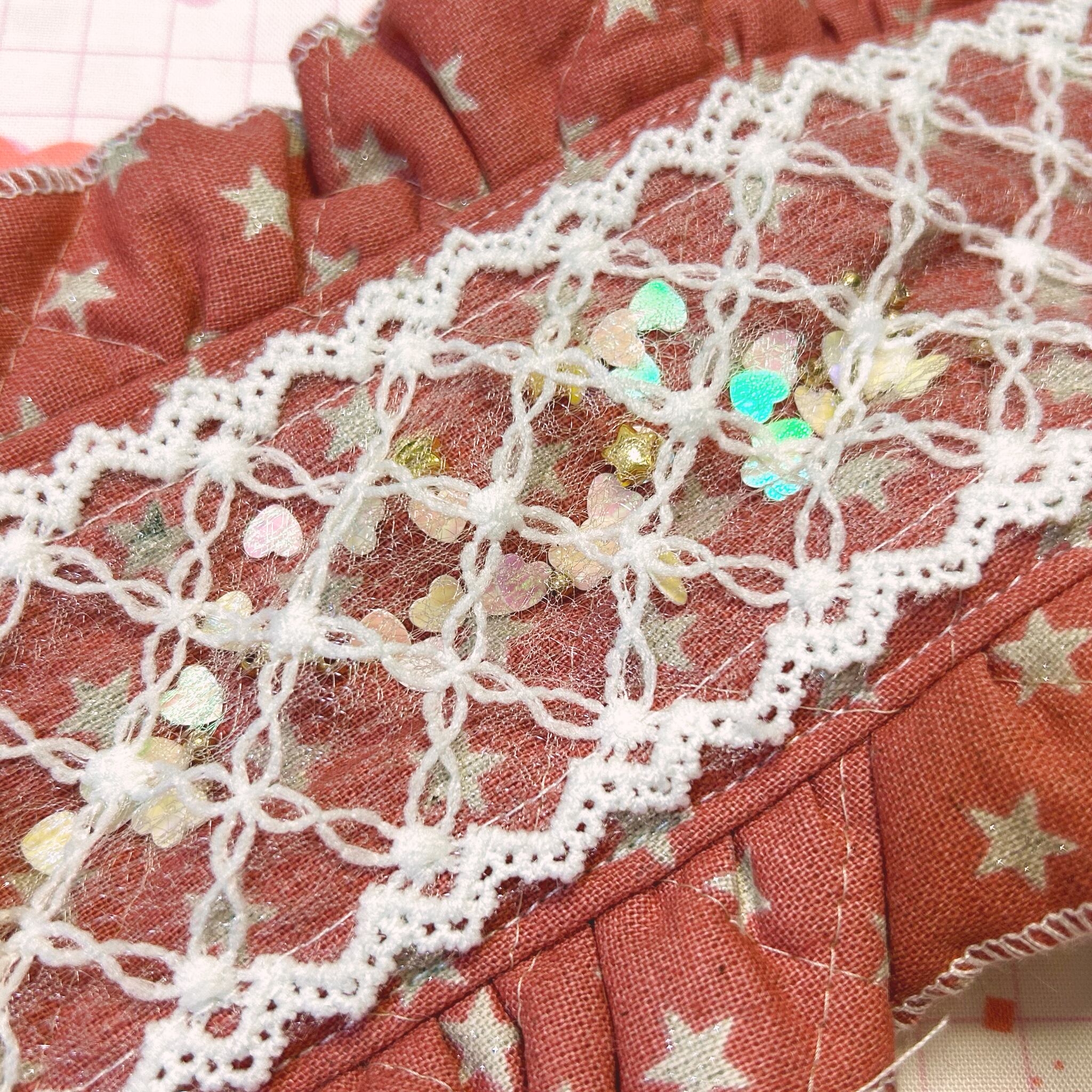 ・透けるレースの内側にスパンコールを封入していて、シャカシャカと揺れます。