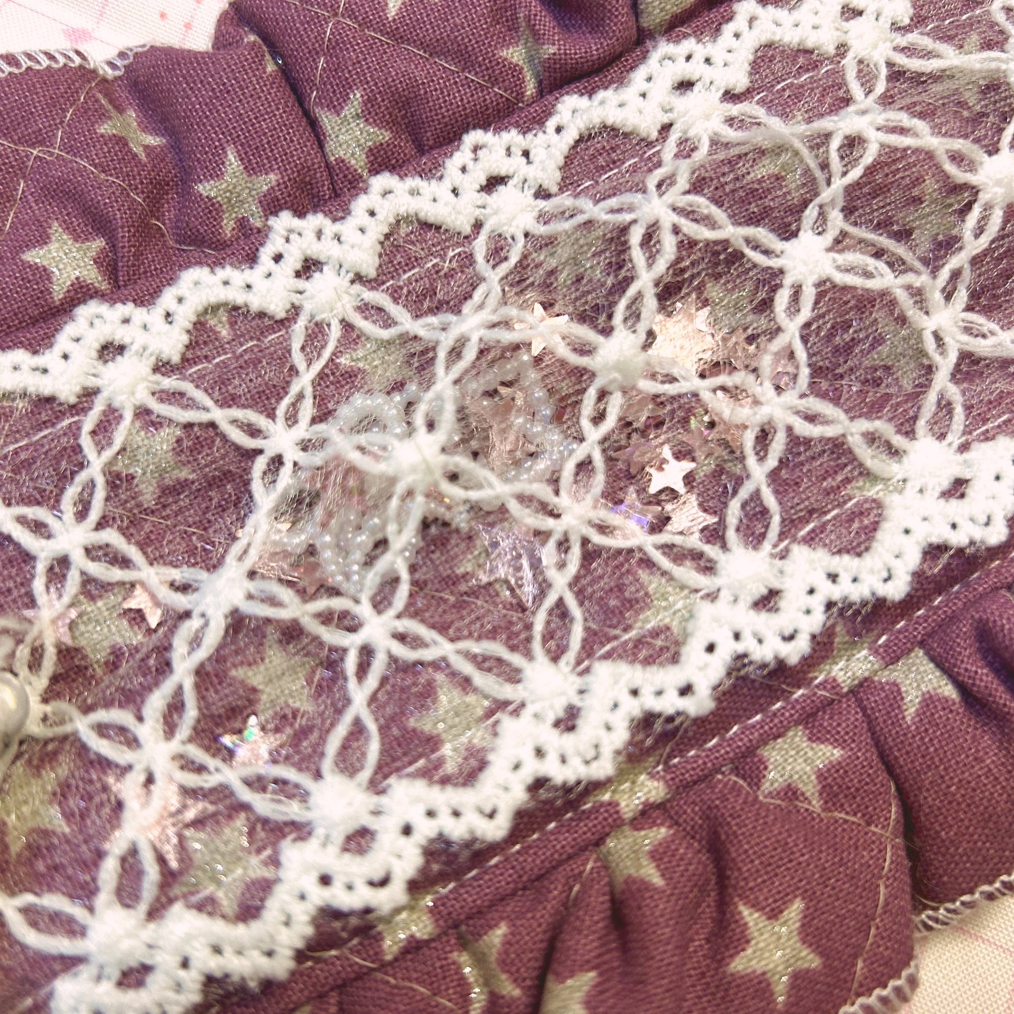 ・透けるレースの内側にスパンコールを封入していて、シャカシャカと揺れます。