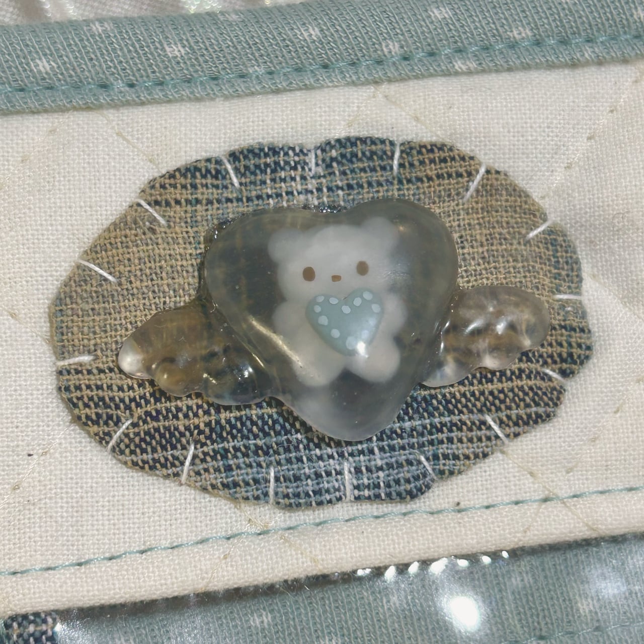 ✶表紙にはひとつひとつ手作りの天使ハートクマのマスコットがついています