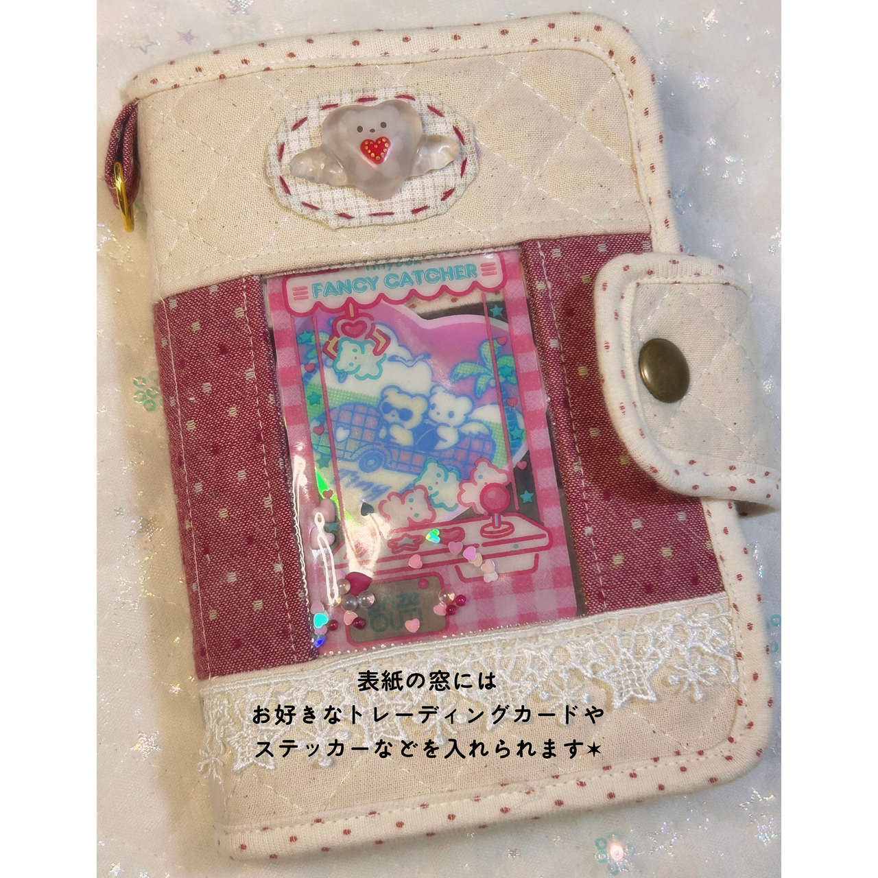 ✶表紙にはひとつひとつ手作りの天使ハートクマのマスコットがついています