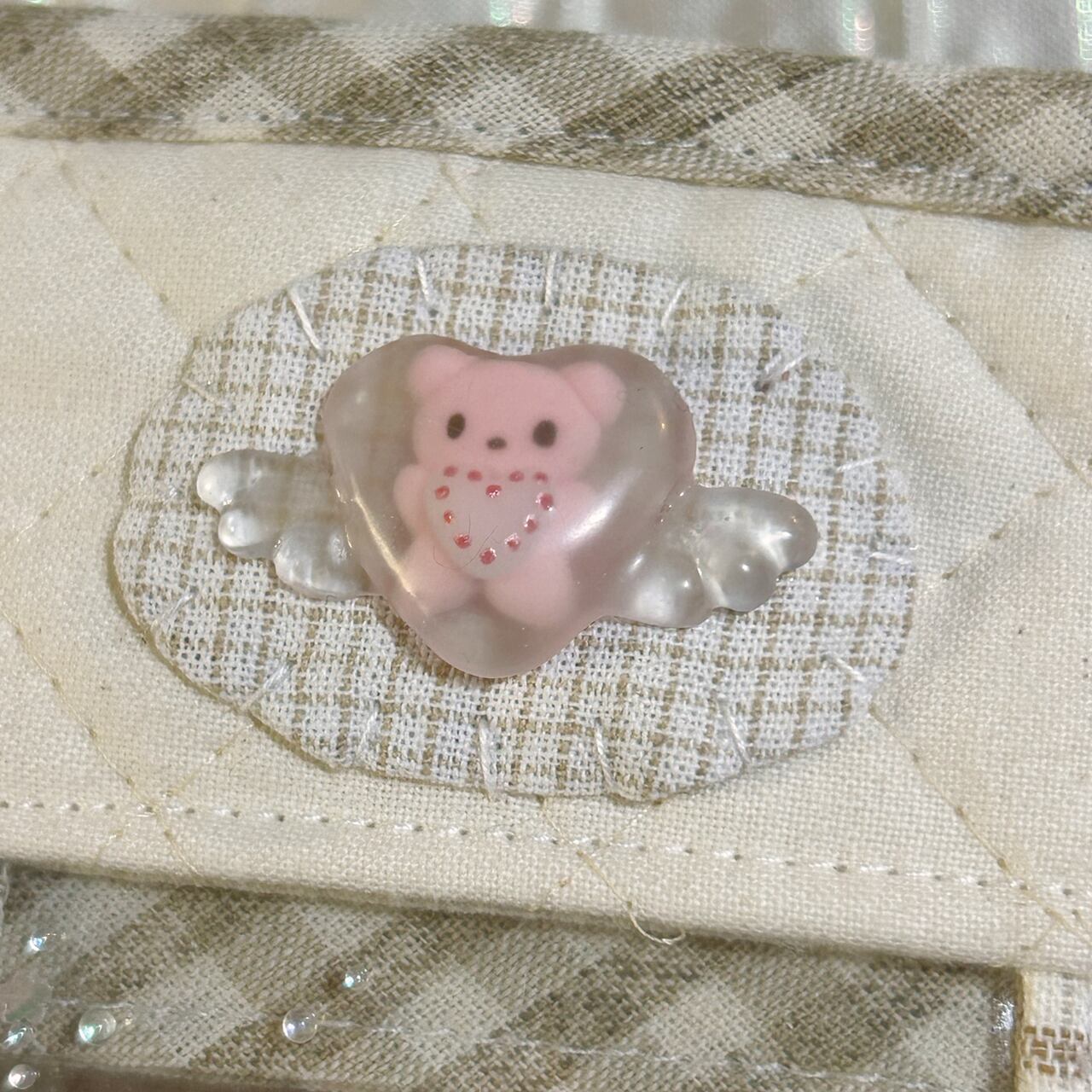 ✶表紙にはひとつひとつ手作りの天使ハートクマのマスコットがついています
