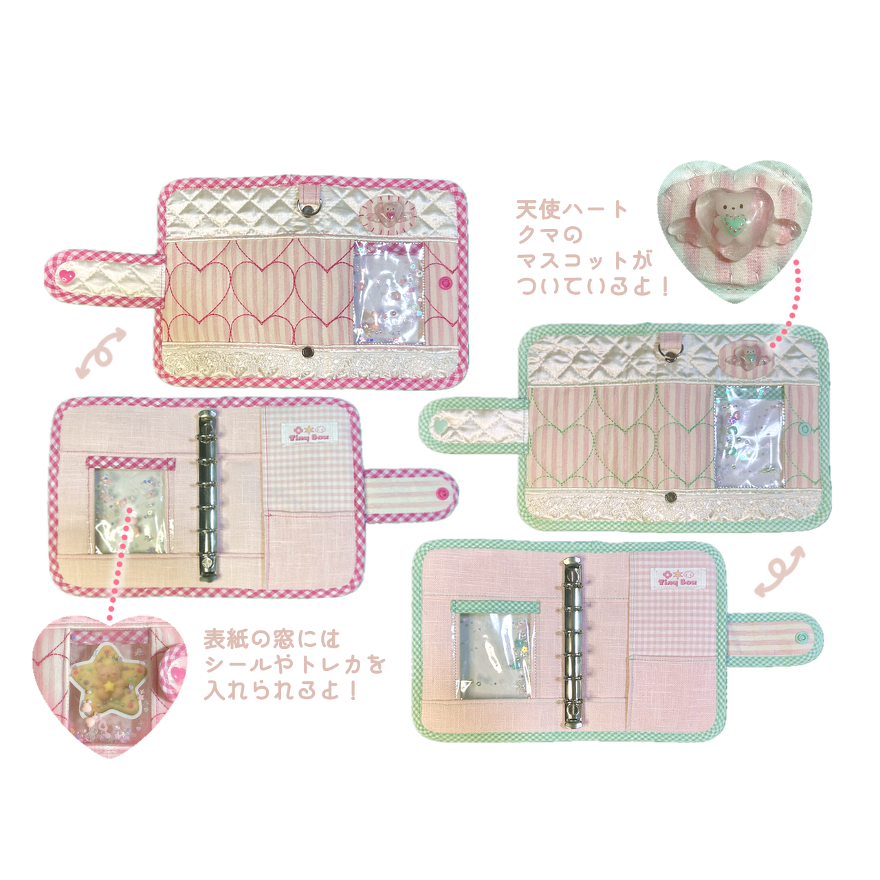 ✶表紙にはひとつひとつ手作りの天使ハートクマのマスコットがついています