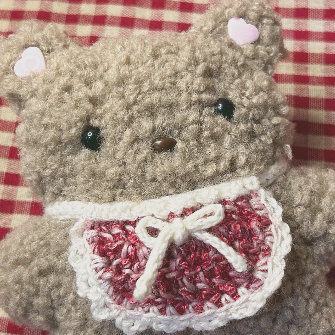 耳にハートがついたクマのぬいぐるみと、カラフルな毛糸のスタイのセットです♥バレンタインカラーの特別仕様!