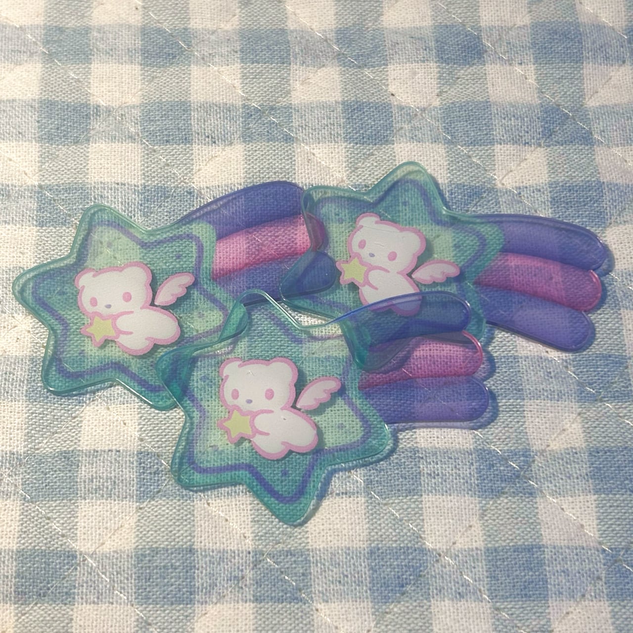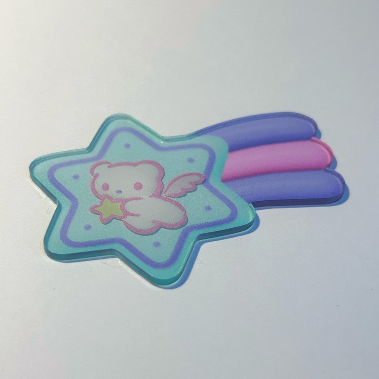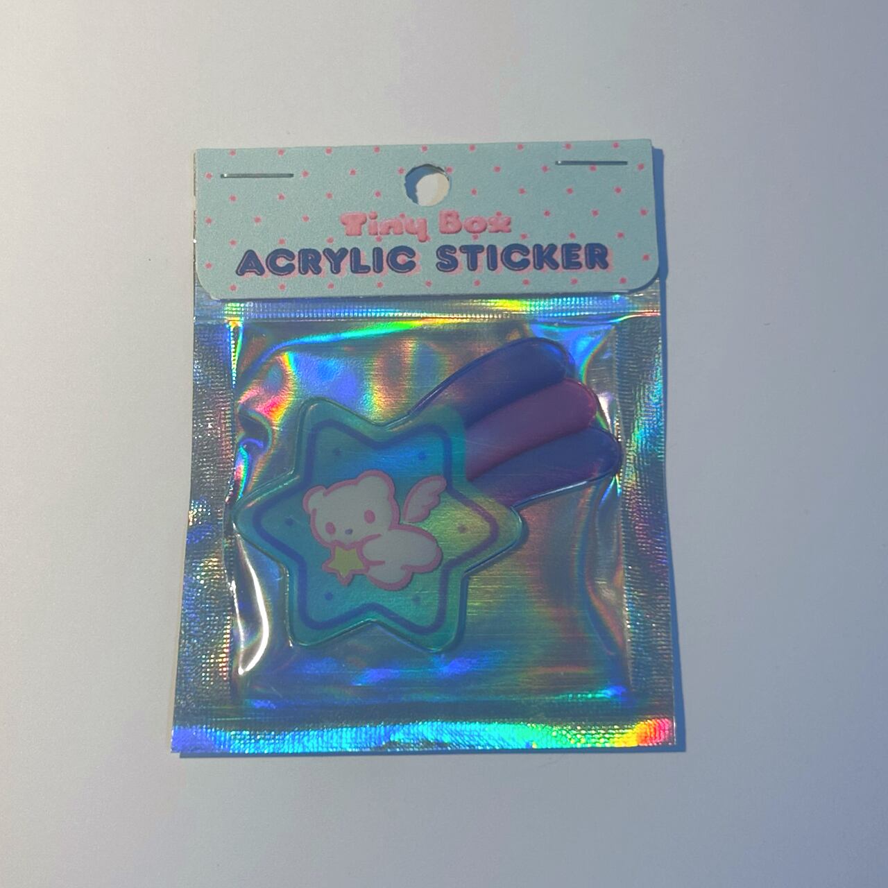 流れ星の中で天使のクマが星をつかんでいる、ファンシーなアクリルクリアシール✮⋆˙3色展開!