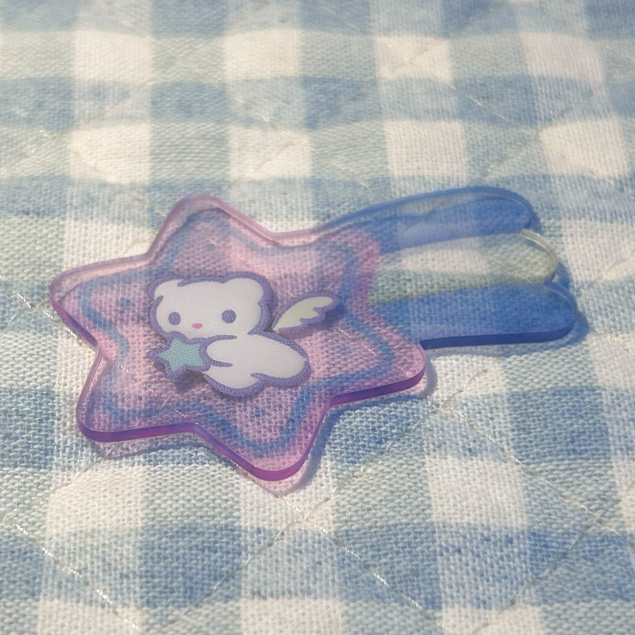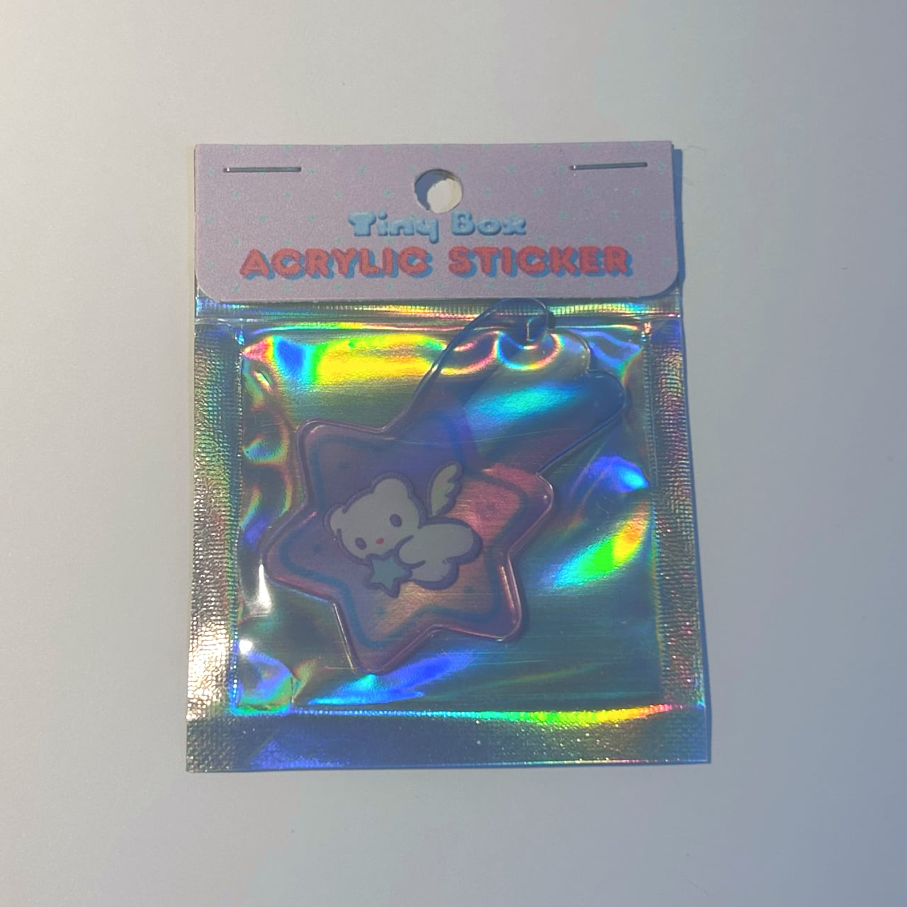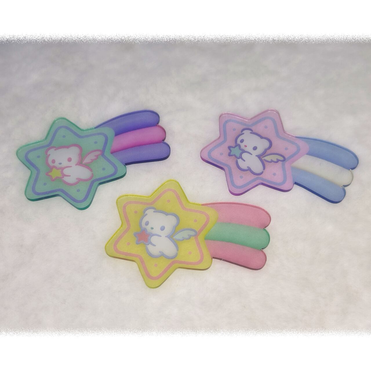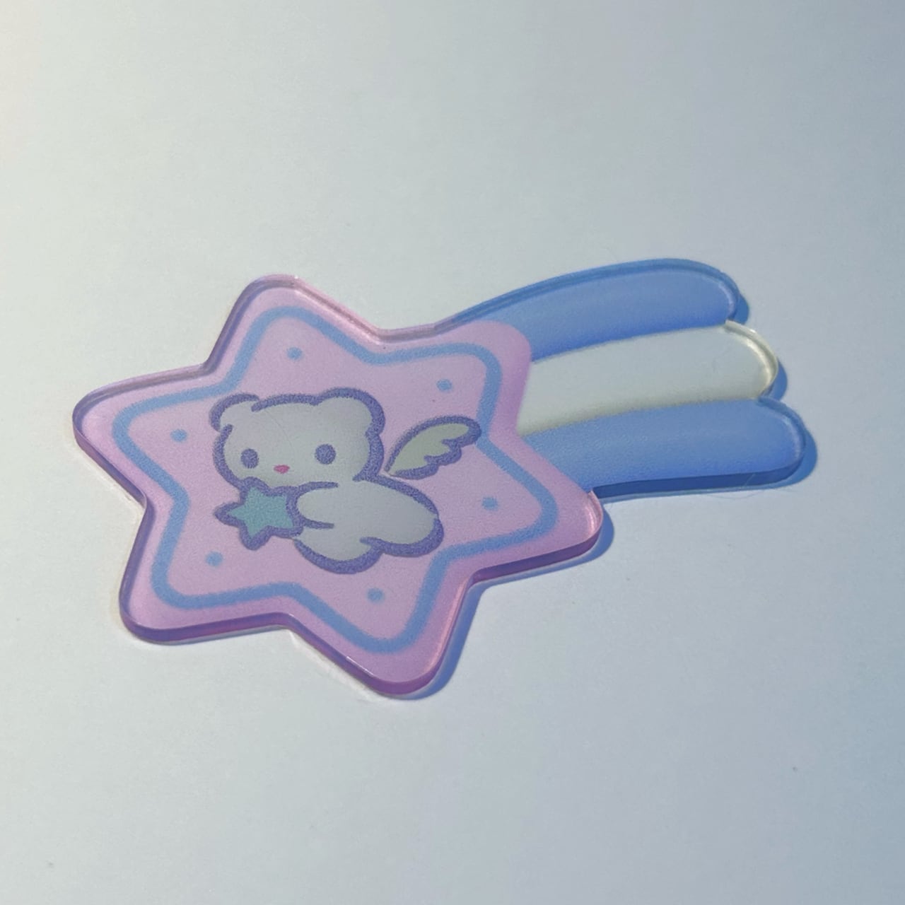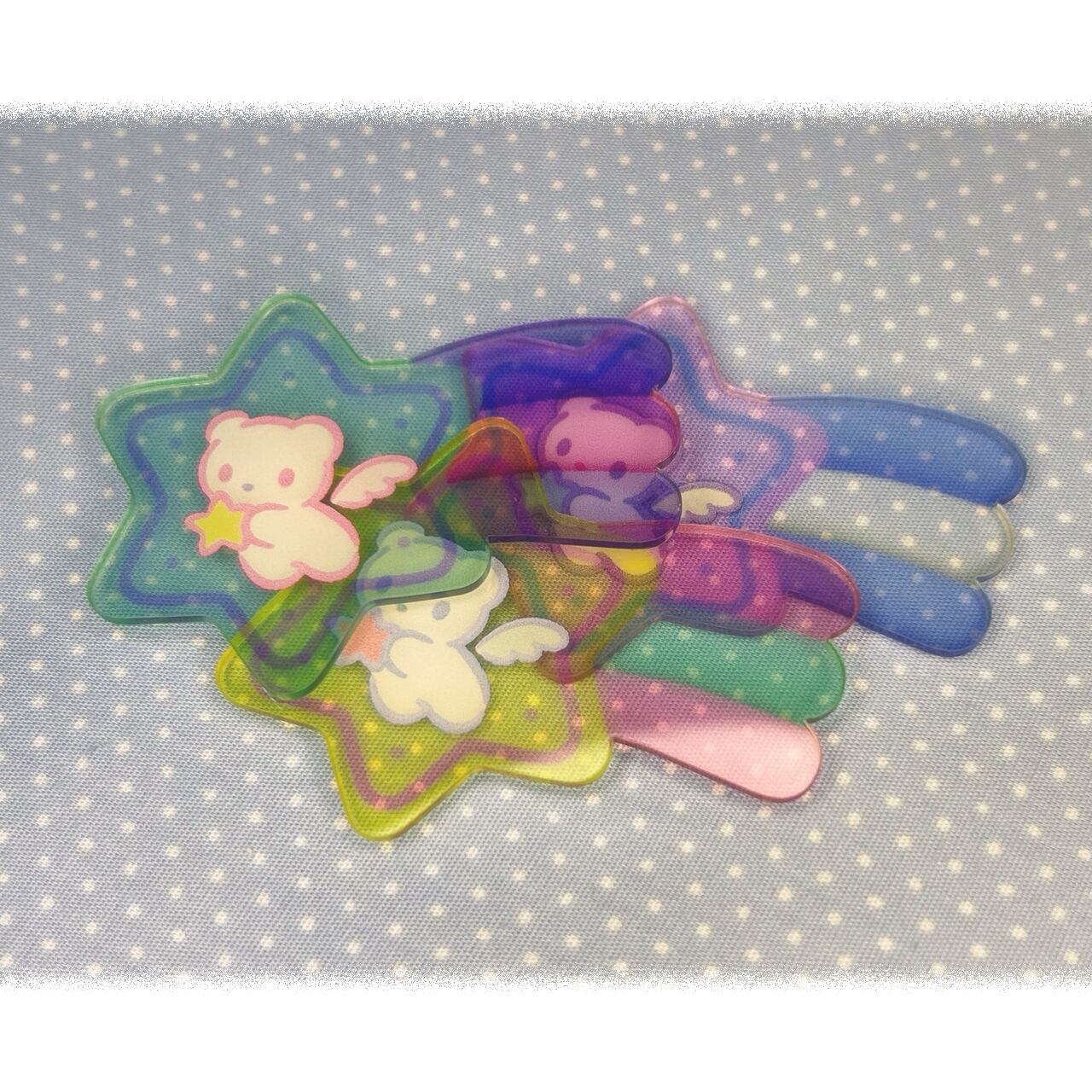 流れ星の中で天使のクマが星をつかんでいる、ファンシーなアクリルクリアシール✮⋆˙3色展開!