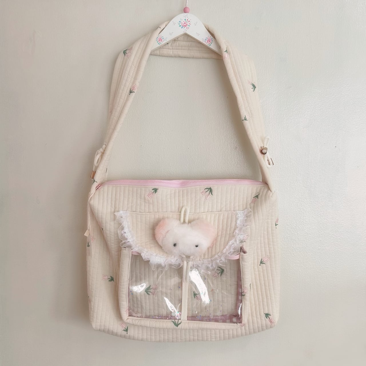 あたたか♡ゆ〜とぴあさんのオリジナルぬいぐるみ「クリオネコ」のお顔がついたファンシーなBIGショルダーバッグです。