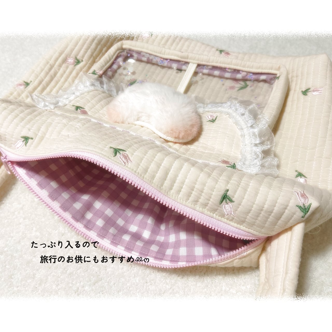✧︎透明の窓付きポケットにはビニール部分にビーズやスパンコールを封入していて、シャカシャカと揺れます。