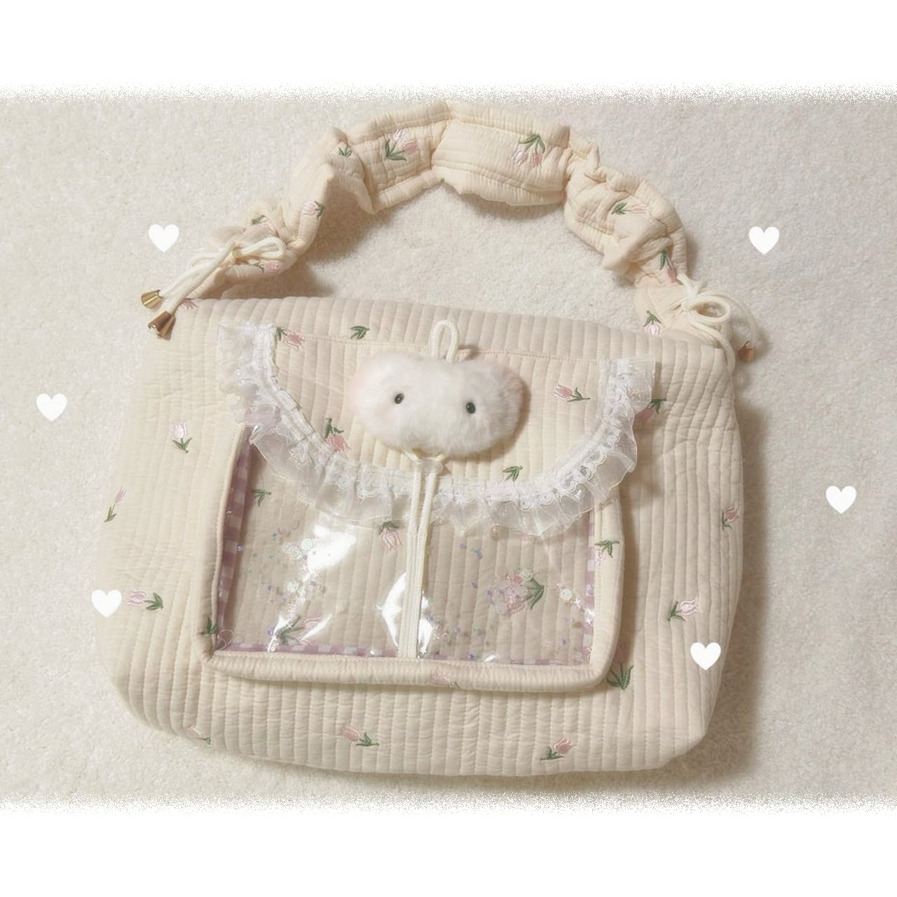 ✧︎ぬいぐるみに紐をひっかけてコードを絞ることで、ポケットを閉じられる仕様になっています。