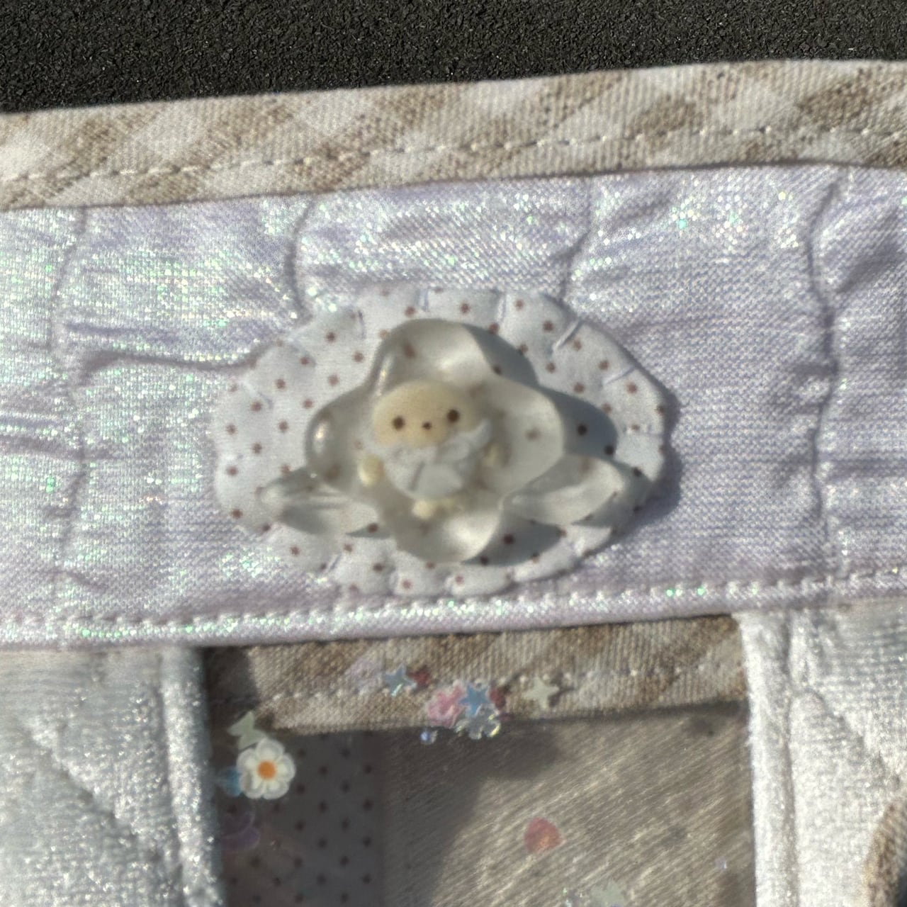 ・透明窓部分のフレークやビーズは目測で封入しているため、写真と印象が異なる場合がございます。また、布の柄の出方にも個体差がございます。あらかじめご了承ください。