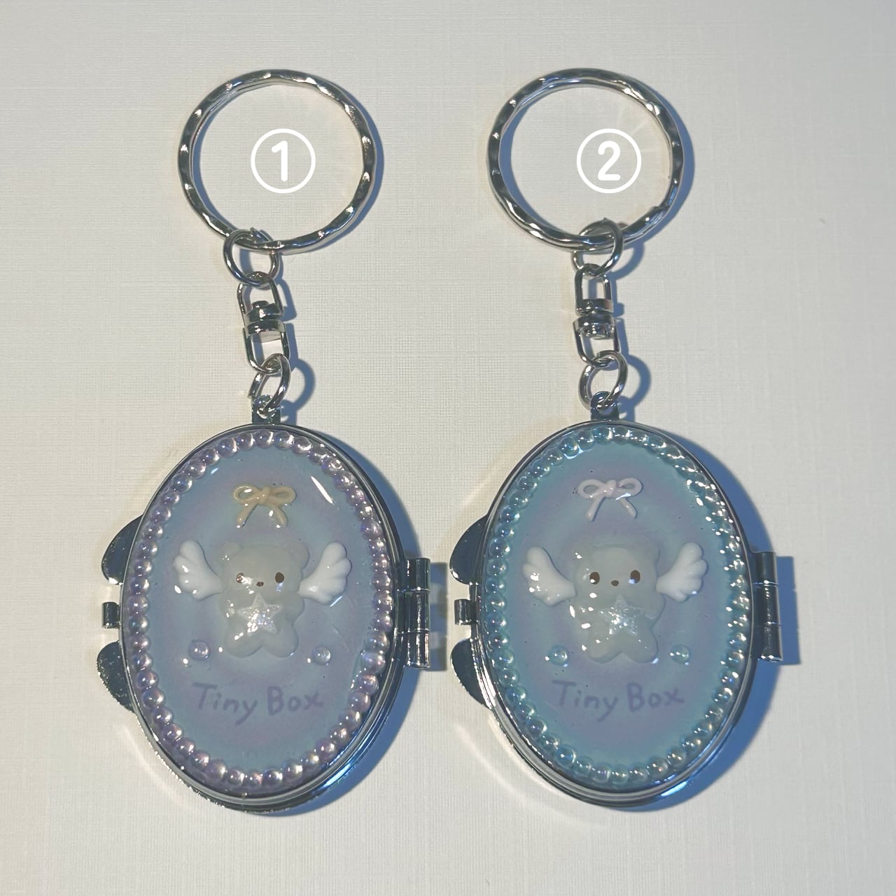 天使クマのレリーフを施したきらきらのキーホルダー!