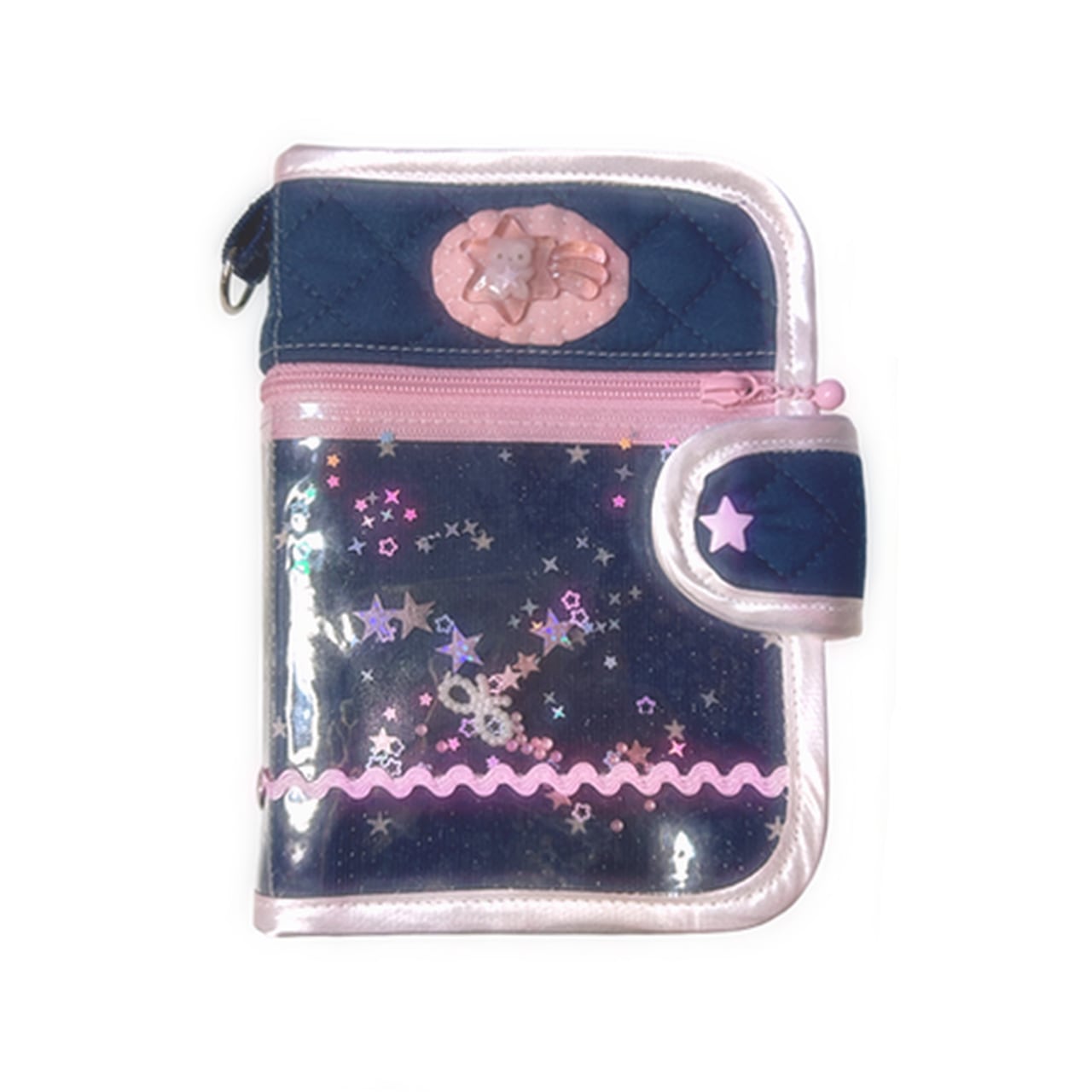 ✶表紙と裏表紙のビニール部分はポケットになっていて、ファスナーを開けてカードやシールなどを入れることができます