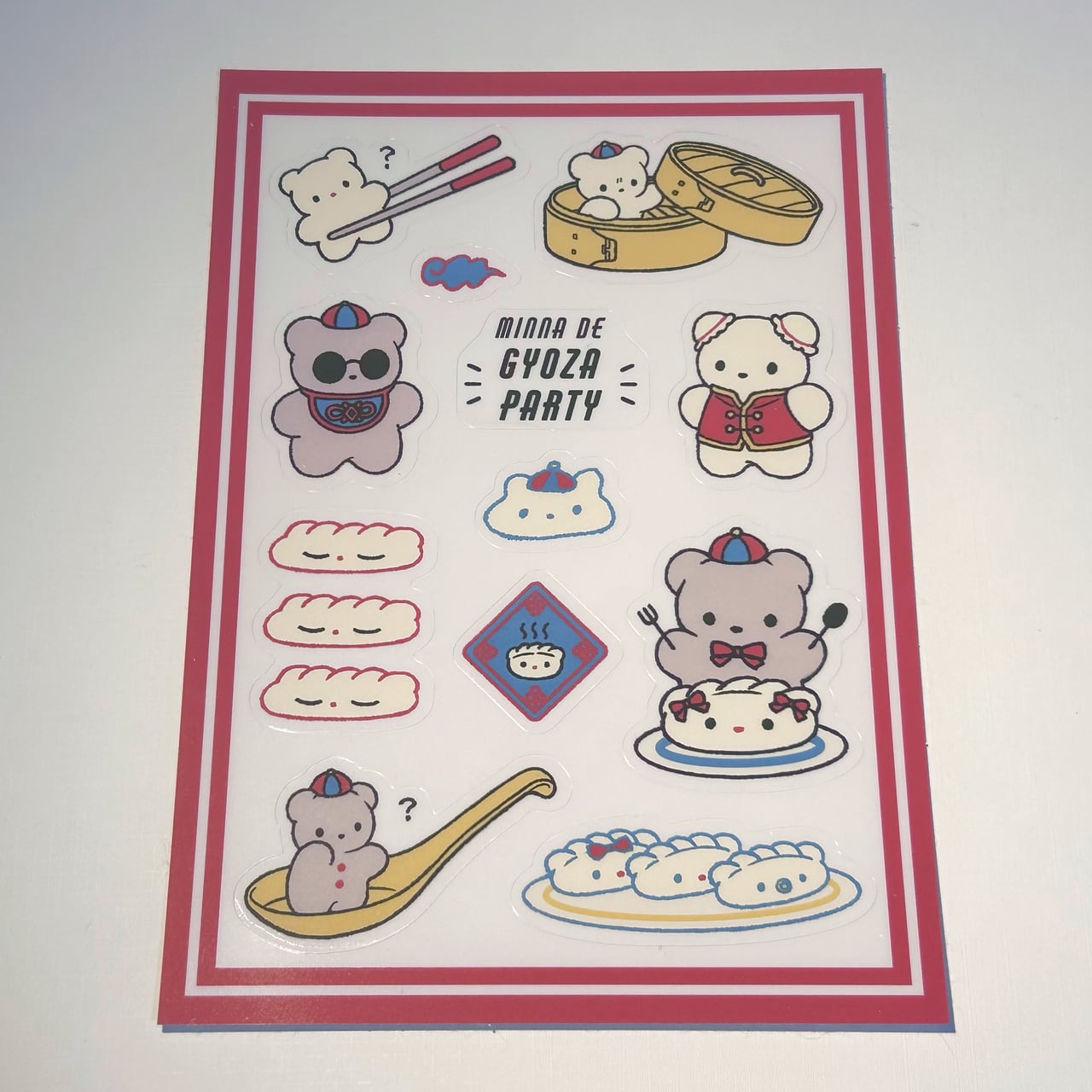 餃子パーティークリアシール(レッド)【ぬいぐるみ企画室 縫星コラボ】